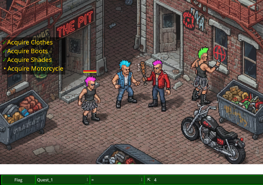 Instant flag updating during dialogue, fast and minimal writing, and support for a wide list of operators and variable types, including arrays and dictionaries as flag values!