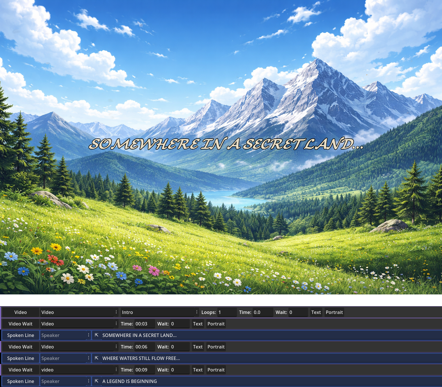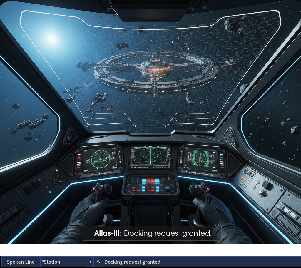 The result: real-time cutscenes can be scripted entirely through dialogues by alternating spoken lines and cutscene commands. Winning a movie award by making video games has never been easier!