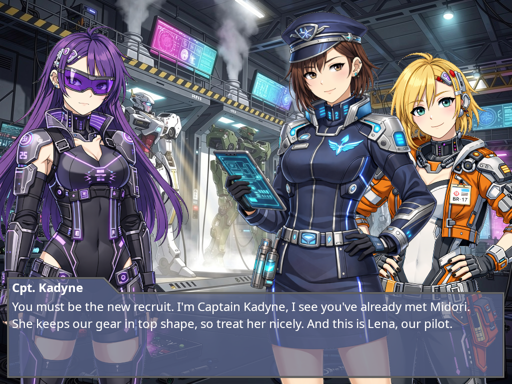 Note: screenshots on this page are provided for illustrative purposes. As such, they may include ai-generated art assets, such as characters and backgrounds, overlaid with UI elements using Candy Dialogue Engine’s capabilities. Depicted art assets are not included with Candy Dialogue Engine.
