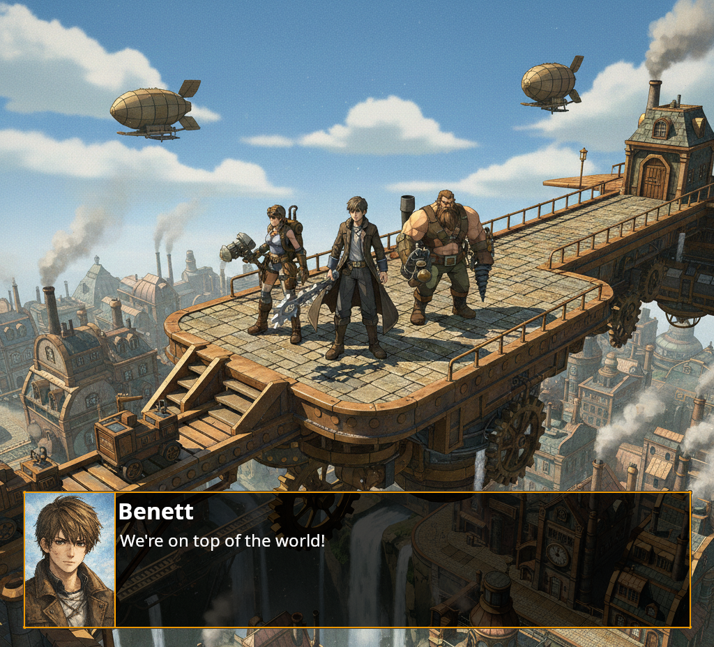 How about a hybrid VN mode, with busts for NPCs and portraits for the player, for a more immersive feel? That’s included!
